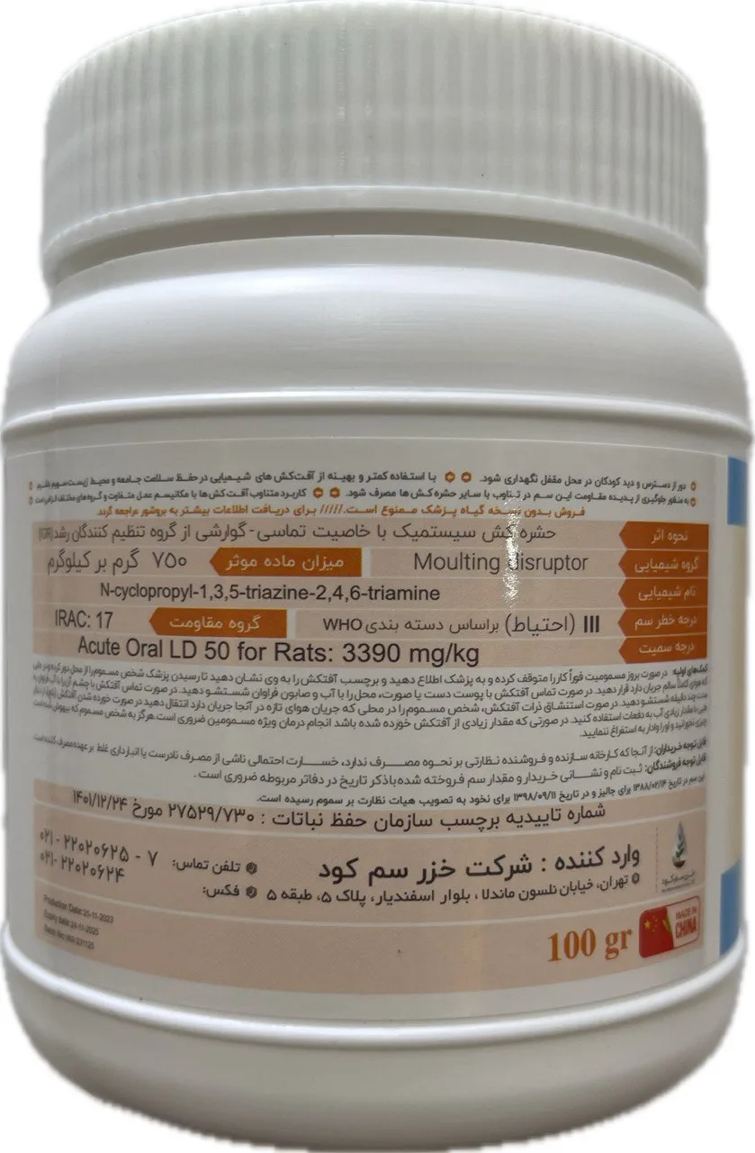 این محصول با مصرف 0.3 در هزار، پسیل پسته و سفیدبالک را بهطور مؤثر کنترل میکند.
