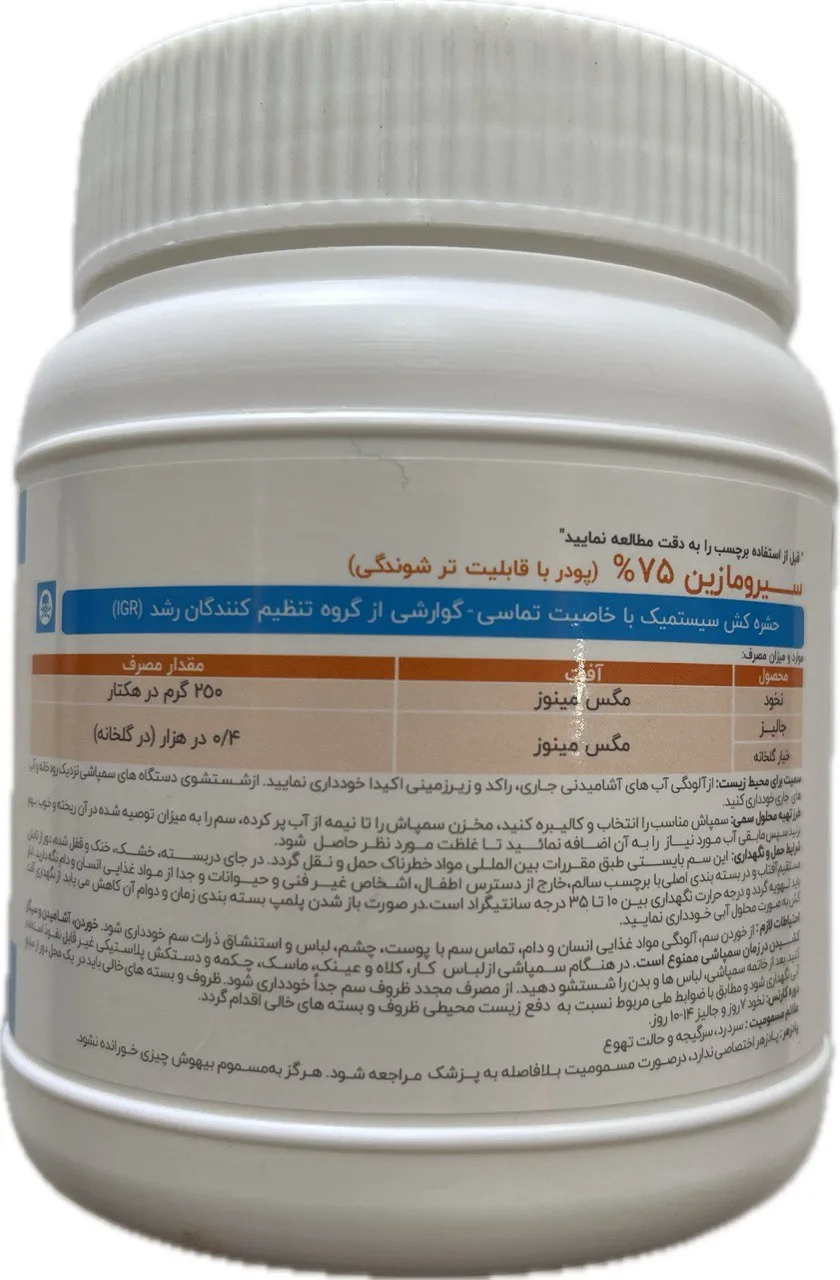 این محصول با مصرف 0.5-0.75 لیتر در هزار لیتر آب، اثر تدریجی اما پایدار داشته و در برنامههای مدیریت مقاومت کاربرد دارد.