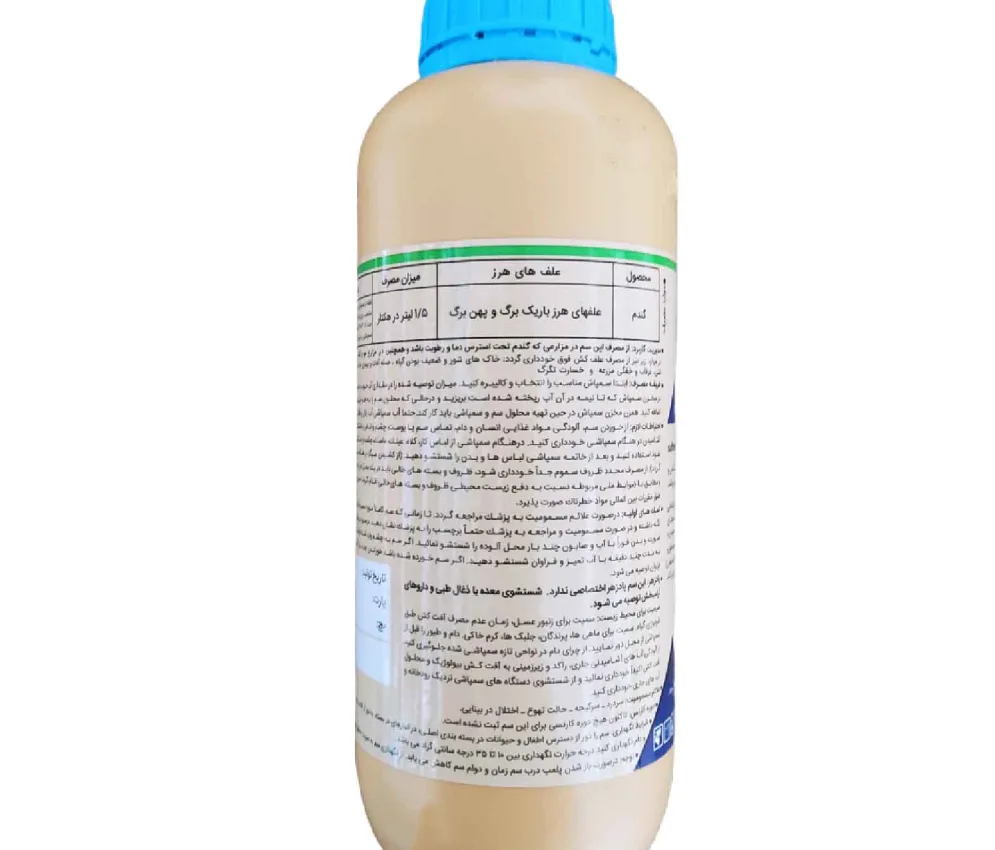 نوع محصول علفهای هرز قابل کنترل زراعی اکثر علفهای هرز یک ساله و چند ساله باغبانی علفهای هرز بین ردیفی، علفهای هرز چند ساله فضای سبز علفهای هرز چمن، علفهای هرز چند ساله تومان525.550 -