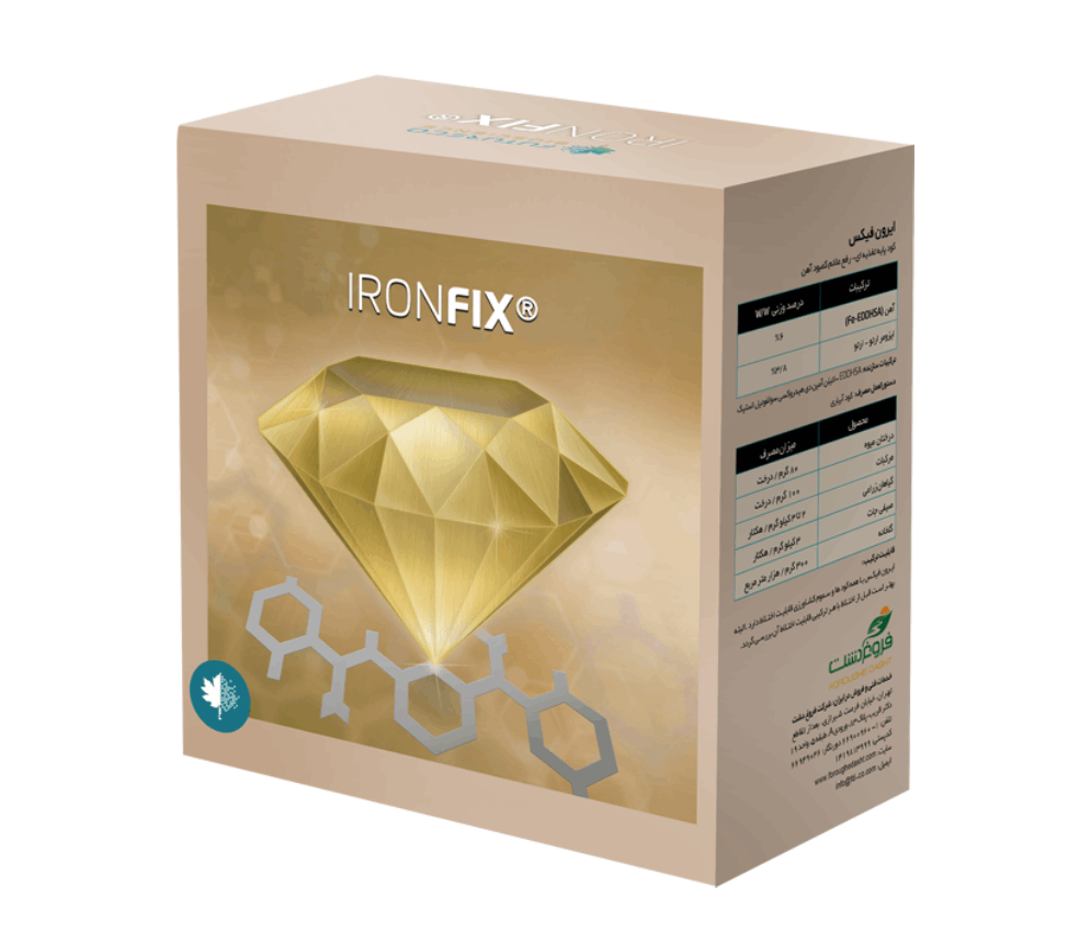 کود آهن آیرون فیکس فروغ دشت یک فرمولاسیون تخصصی و بسیار مؤثر حاوی ۶٪ آهن کلاته با EDDHA و ۴.۸٪ ایزومر فعال اورتو-اورتو (o-o) است که توسط شرکت فروغ دشت تولید و به بازار عرضه میشود. این محصول بهطور ویژه برای خاکهای آهکی و قلیایی ایران طراحی شده و با دارا بودن بالاترین درصد ایزومر فعال، حتی در شرایط pH بالا نیز کارایی خود را حفظ میکند. آیرون فیکس با استفاده از فناوری پیشرفته کلاتسازی، راهکاری مطمئن برای رفع کمبود آهن و کلروز ناشی از آن در محصولات مختلف ارائه میدهد.